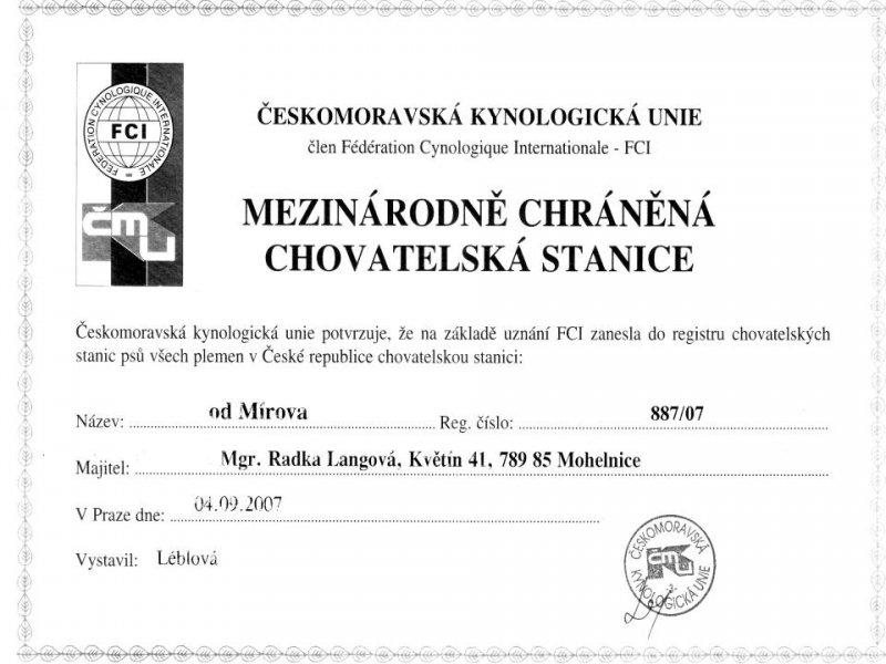 Adresa: Květín 41, Mohelnice 78985 Telefon: +420777115177 Zodpovědná osoba: Radka Langová www: www.odmirova.websnadno.cz Mail: | Reg. číslo CHS: 887/07 Certifikát CHS: Zobrazit Certifikát ::: Plánujeme vrh: 13.11.2010 Hodnocení: 80 bodů ze 100 |