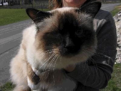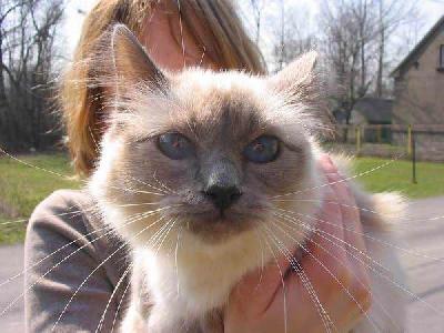 Před dlouhými lety žili v daleké krajině Tibetu mniši vyznávající náboženství Kittah, uctívající boha Song-Hyo a bohyni s nádhernýma safírovýma očima Tsun Kyan-Kse. Ve stínu hory Lugh vybudovali překrásný klášter Lao-Tsun a v něm svatyni zasvěcenou bohyni převtělování Tsun Kyan-Kse.Nejosvícenějším a nejváženějším mnichem byl učený stařec Mun-Ha. Mun-Ha byl zcela oddán službě bohyni Tsun Kyan-Kse, že ostatní mniši věřili, že snad sám bůh Song-Hyo zapletl zlaté vlasy jeho bradky, symbolu pokory.Vždy, když rozjímal před zlatou sochou bohyně převtělování Tsun Kyan-Kse, stál po jeho boku kocour se sněhobílou srstí a žlutýma očima. Jmenoval se Sihn.Tak tomu bylo i jedné noci, kdy byl klášter přepaden hordou nepřátelských barbarů ze Siamu. Svatý mnich Mun-Ha zahynul, ponořen v motlitbách, před zlatou sochou své bohyně se safírovýma očima.Tehdy Sinh vyskočil na trůn a nehybně seděl opřený tlapkami o pánovu hlavu před sochou bohyně. A uskutečnil se zázrak převtělení! Bílá srst kočky se zbarvila zlatým leskem bohyně, žluté oči se změnily na safírové. Obličej, uši, nohy a ocas na sebe vzaly hnědou barvu země. Jen konečky tlap, kterými se kočka dotýkala stříbrných vlasů svého pána, zůstaly čistě bílé, na znamení mnichovi čistoty.Jen jednou Sinh odvrátil své oči od sochy bohyně Tsun Kyan-Kse, směrem k jižní bráně kláštera. Mniši, poslušni znamení bohů, spěchali těžkou bránu uzavřít a zastavit tak další nájezdy lupičů. Chrám byl uchráněn.
