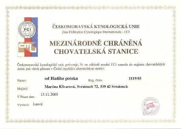 Adresa: Svratouch 72 Telefon: +420 777 902 415 Zodpovědná osoba: Martina Klivarová www: www.bloodhound.kvalitne.cz Mail: | Reg. číslo CHS: 1119/03 Certifikát CHS: Zobrazit Certifikát ::: Plánujeme vrh: 10.02.2011 Hodnocení: 82 bodů ze 100 |