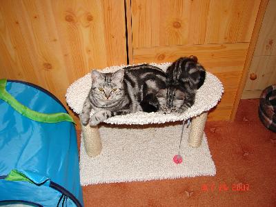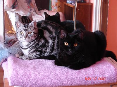 O nás:Jsme malá rodinná chovatelská stanice. Kočičky s námi žijí volně v bytě. Odchováváme koťátka v barvách: černá, modrá, čokoládová, lila a černá a modrá stříbřitá mramorovaná a černá zlatá mramorovaná.