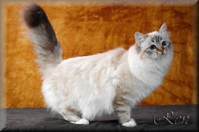 ...Bájná legenda, která tuto kočičku provází a můžete se s ní setkat v různých zdrojích literatury, pochází z Barmy a vypráví o věrném kocourovi Sinh, který prý žil v klášteře se starým lámou Mun Ha, který svůj život zasvětil bohyni převtělení, se safírovýma očima.. Jedné noci, kdy byl klášter přepaden a starý láma zemřel v modlitbách, se stal zázrak a jeho bílý kocour, který svého pána v hodině smrti neopustil, se jako zázrakem změnil....oranžové oči získaly hlubokou modrou barvu safírů, srst zezlátla, obličej, uši a ocas získaly barvu země, jen tlapky zůstaly bílé. Kocour, který dle legendy přijal duši starého lámy, zůstal se svým pánem po celých následujících 7 dní a pak také zemřel. Ještě ten den se změnily i všechny ostatní kočky v klášteře a od té doby přechází toto zbarvení na celé jejich potomstvo.