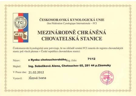 Adresa: Chotouchov Telefon: +420606394299 Zodpovědná osoba: Alena Sobolíková www: www.zrynku.cz Mail: | Reg. číslo CHS: 71/12 Certifikát CHS: Zobrazit Certifikát ::: Plánujeme vrh: 25.06.2012 Hodnocení: 62 bodů ze 100 |